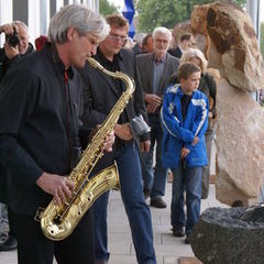Zum Abschluß spielte Martin Wiese Saxophon mit den Musikern um dann gemeinsam mit den Besuchern in die SkulpturenGalerie zu ziehen, in der er die einzelnen Skulpturen bespielte und ihre Charaktere interpretierte.
