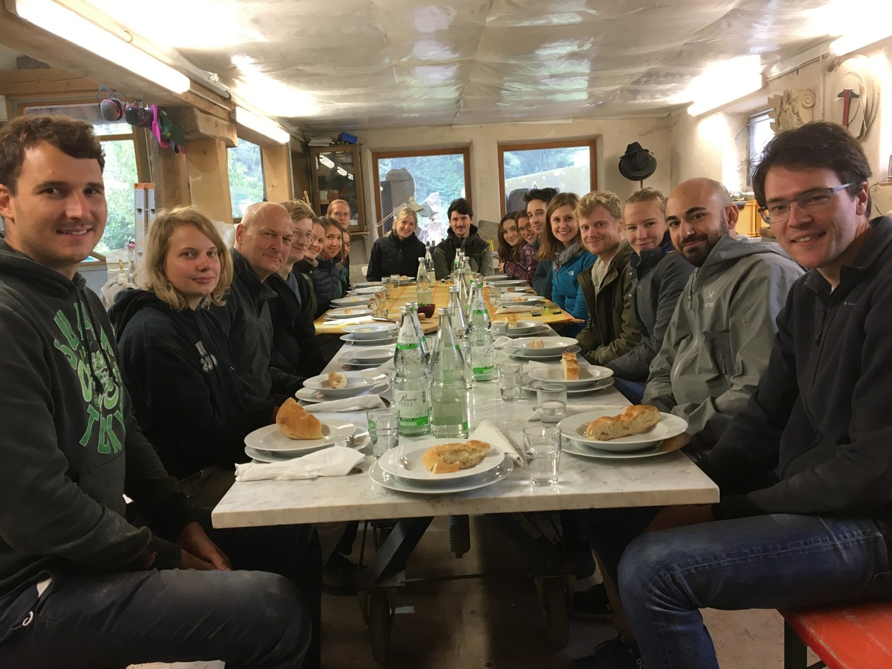 Da es an diesem Tag konstant regnete, (nicht weit von uns am Feldberg fielen in dieser Zeit 20 cm Schnee!) wurde die Arbeit ausschließlich im Atelier durchgeführt. Die Masken, die wegen der Corona Pandemie getragen werden mussten, kamen damit auch wunderbar als Staubschutz zum Einsatz!