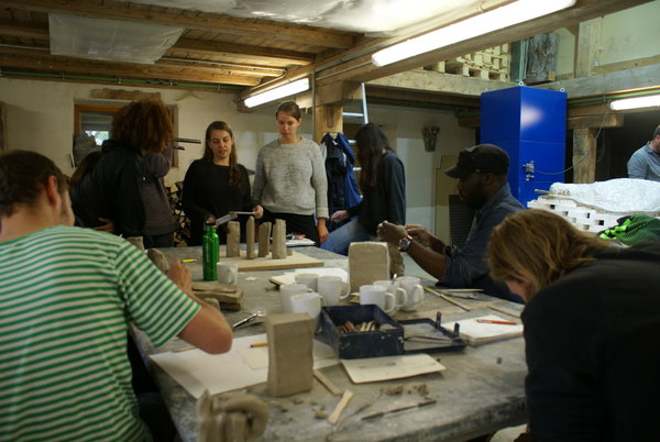 Das Motto "Raum, Bewegung und Form" diente als Leitfaden für eine dreidimensionale Umsetzung. Nachdem sich die Studenten mehrheitlich für die Bearbeitung von sieben Sandsteinstelen entschlossen hatten, wurde in Zweiergruppen mithilfe von Skizzen und Tonmodellen die Bearbeitung der Steine besprochen und durchdacht. Es sollte eine Auseinandersetzung mit den benachbarten bzw. gegenüberliegenden Stelen stattfinden, die in einer bestimmten Anordnung in einem Kreis aufgestellt wurden. Dies zog nach sich, dass die Bearbeitung mit Teilen der anderen Gruppen koordiniert weden musste.
